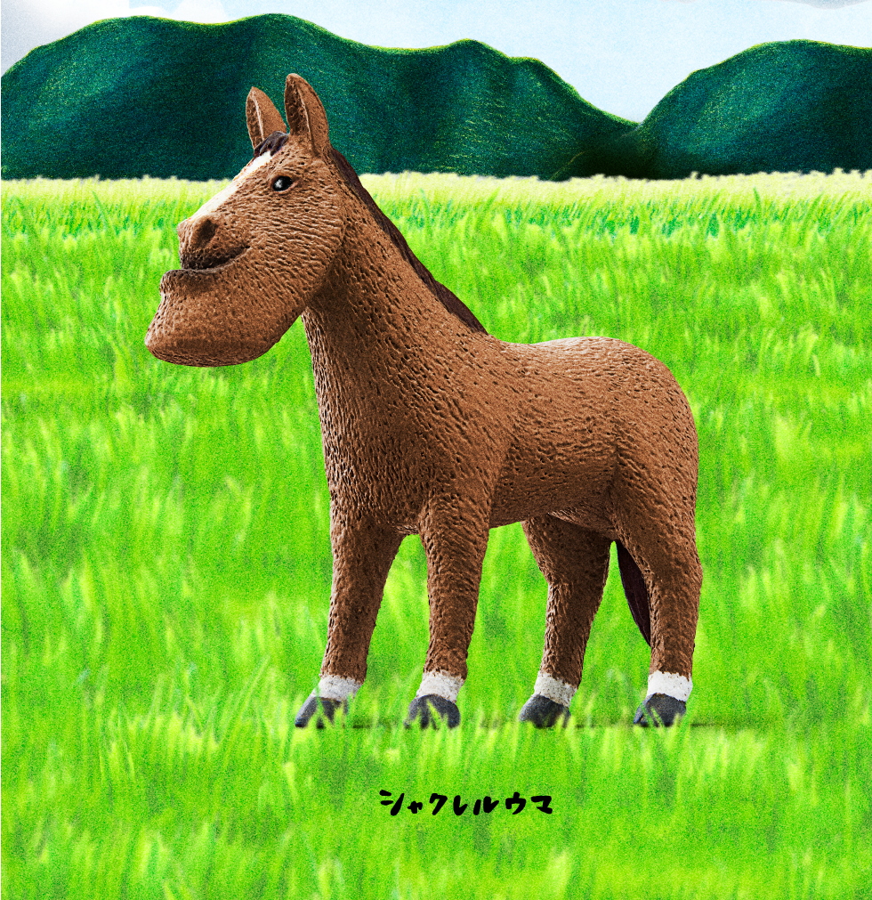 ▼首先是有著厚重下巴的馬兒(シャクレルウマ),看起來莫名有種忠厚老實的感覺!