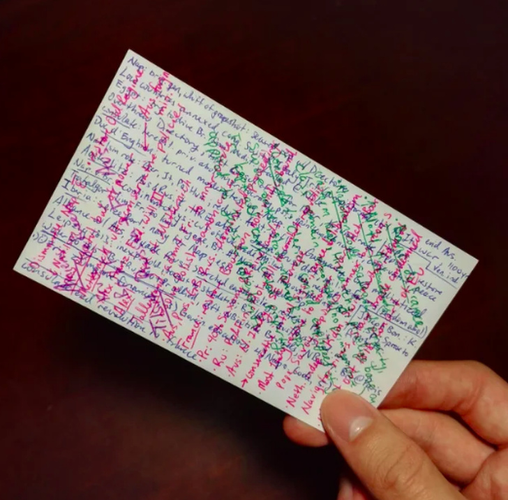 ▼當小抄只能寫成一張紙時,可以利用不同顏色的原子筆!