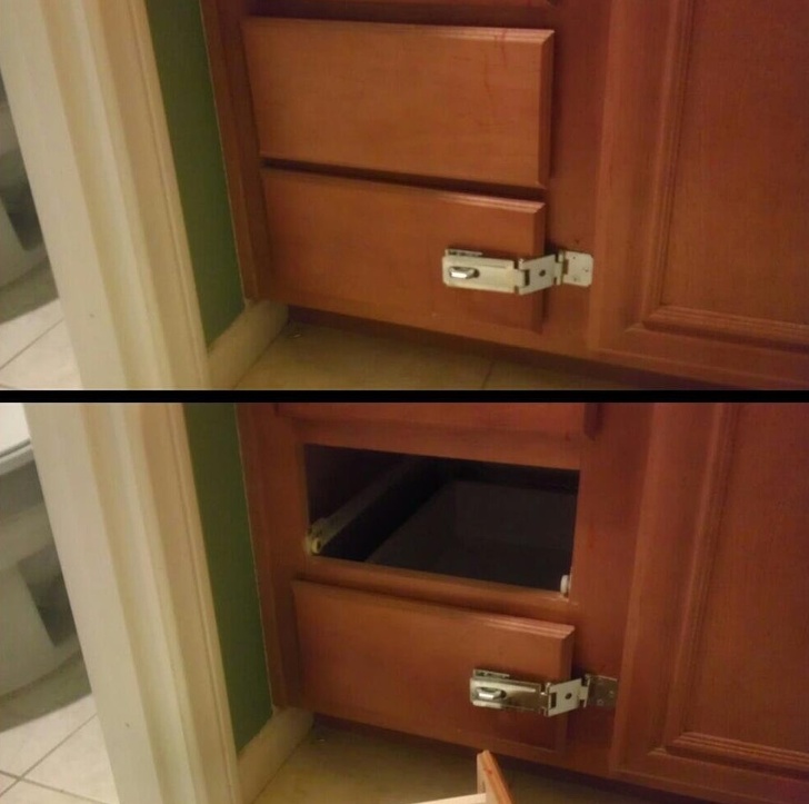 ▼媽媽在下方的抽屜加了一個鎖,於是他將上方的抽屜抽出來…