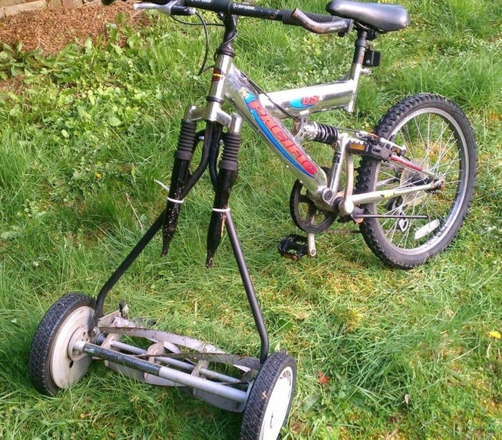 ▼她利用吹葉機和滑板創造出了一輛自行車!