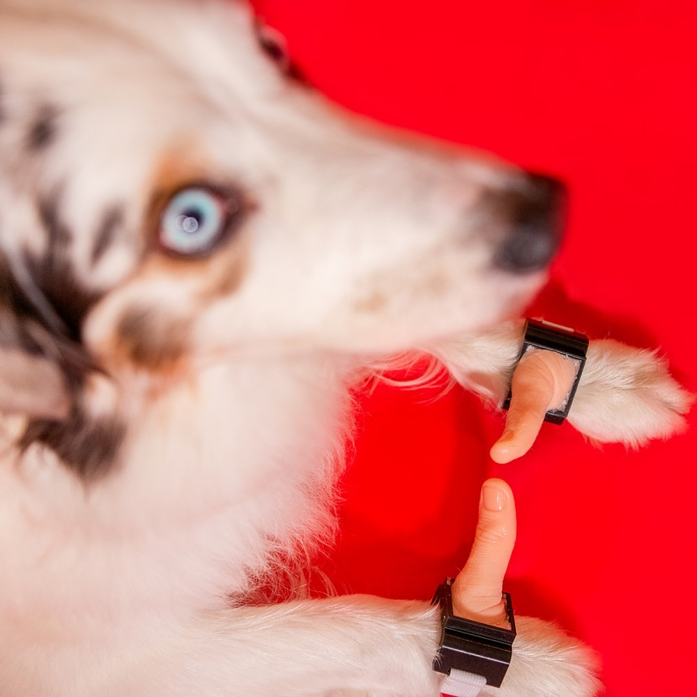 創意設計品牌「Unnecessary Inventions」推出過很多有趣的小物,在全球吸引了近30萬粉絲。近期他們專門為狗狗設計了一款「手環」,狗狗戴在手腕上後,就能擺出「手指碰手指」的造型,看起來很專業~