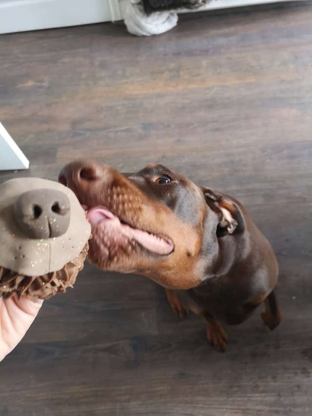 2019年09月06日國外女孩Marie Taylor養了一隻叫Reuben的杜賓犬。Reuben非常可愛,還很粘人,Marie超級愛牠,尤其喜歡牠的大鼻子。她跟男友開玩笑說,希望自己生日時能收到Reuben鼻子形狀的蛋糕。