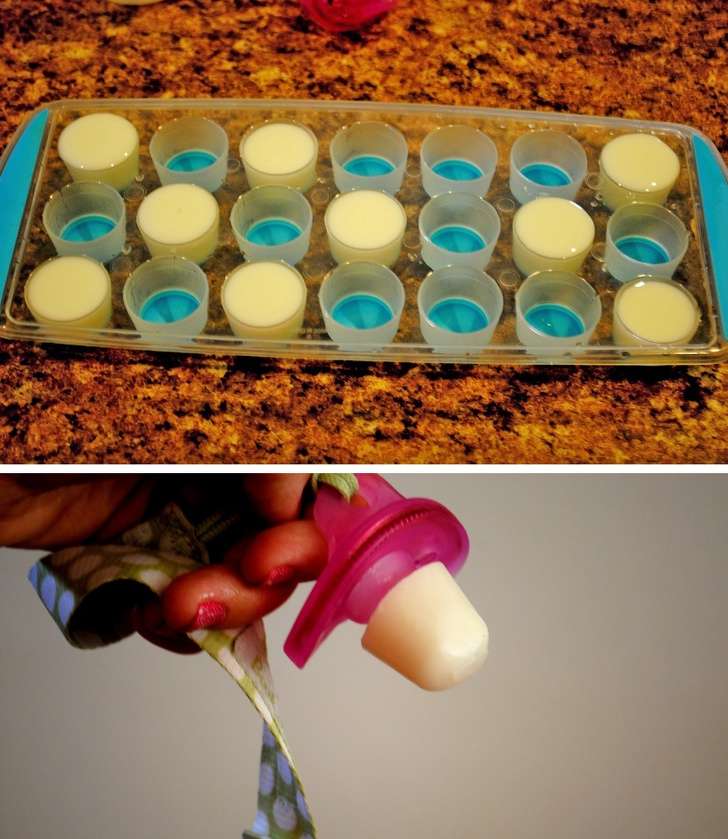▼將母奶弄成「奶嘴凍」,就可以餵奶兼防止吵鬧了!
