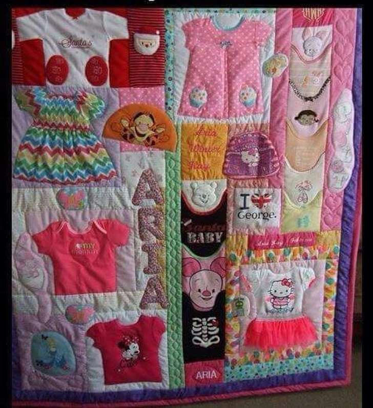 ▼小孩小時候的衣物可以拿來做出他們的被被。