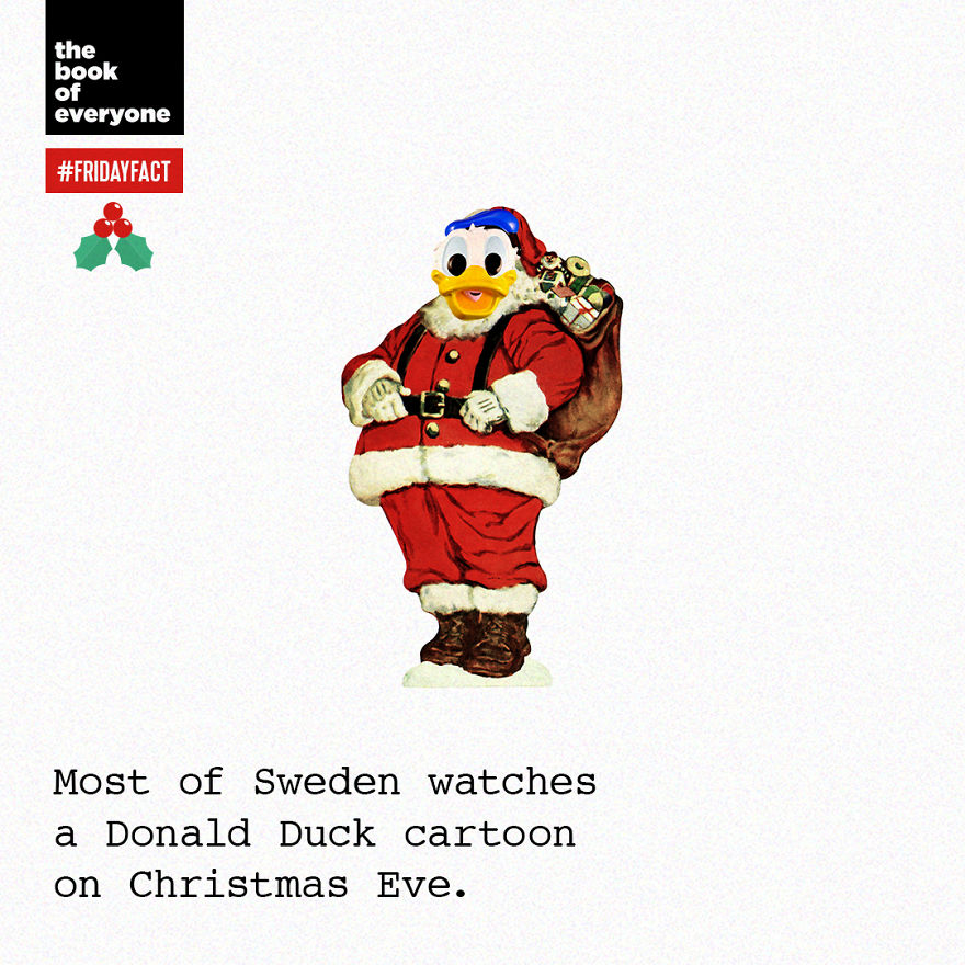 ▼瑞典人在平安夜時,都會看唐老鴨的卡通影片。