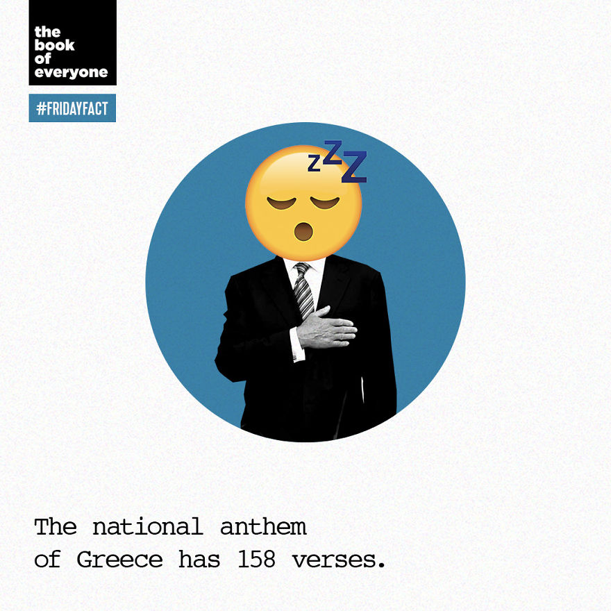 ▼希臘國歌的歌詞有多達158段,全部唱完的話需要55分鐘。