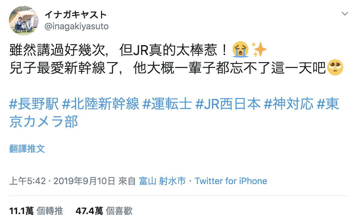 ▼位於日本的長野車站,有一名列車駕駛與少年的互動被少年的家長po上推特,引來超過47萬名網友按讚;家長表示自家的孩子非常熱愛新幹線列車,當天在車站遇到駕駛的神應對,讓家長直呼:JR(日本鐵路)真是太棒了!