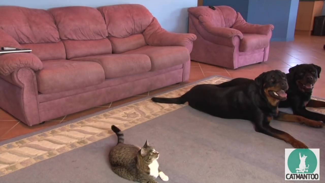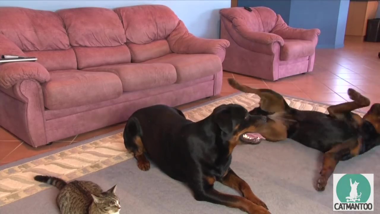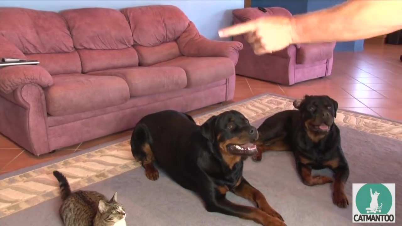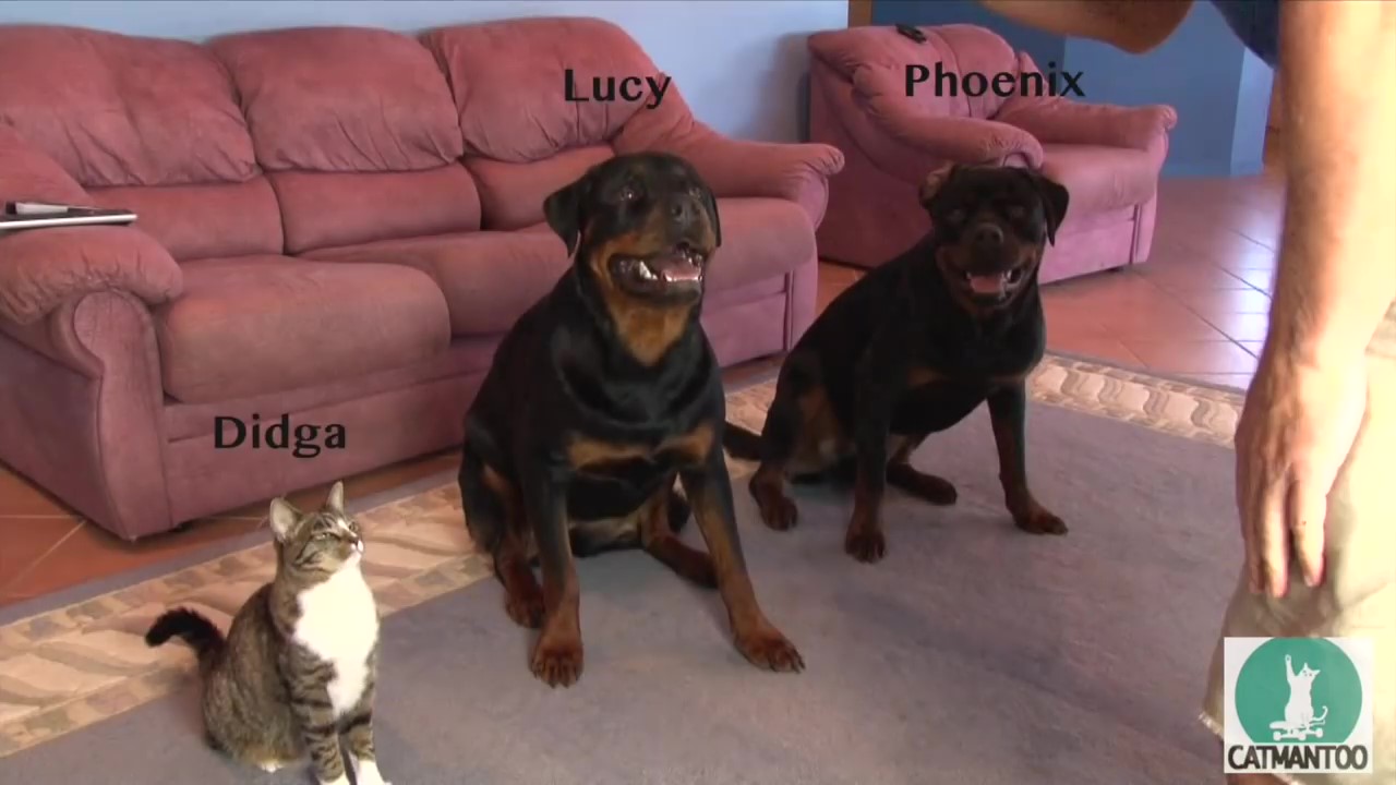 ▼這名網友同時訓練兩隻狗狗,還有一隻貓咪。他擺手下指令,讓3隻毛孩都趴下。兩隻狗狗立刻配合,就連貓咪Didga也跟著做,配合度高到不可思議。