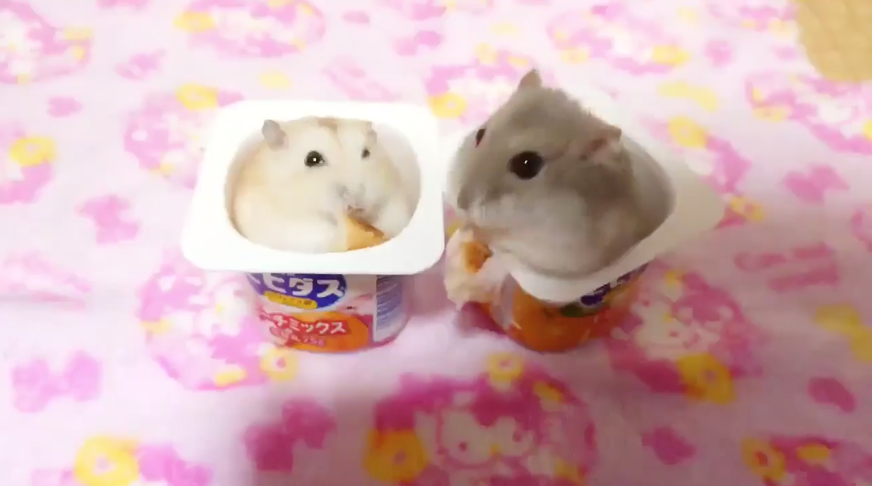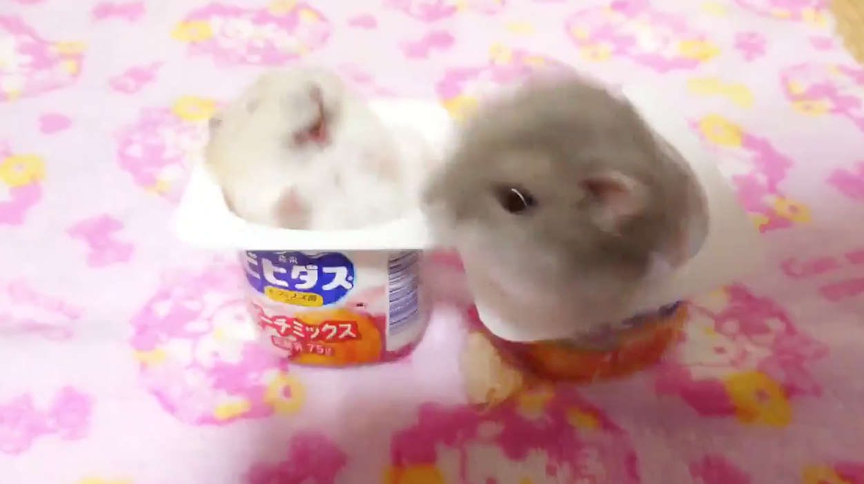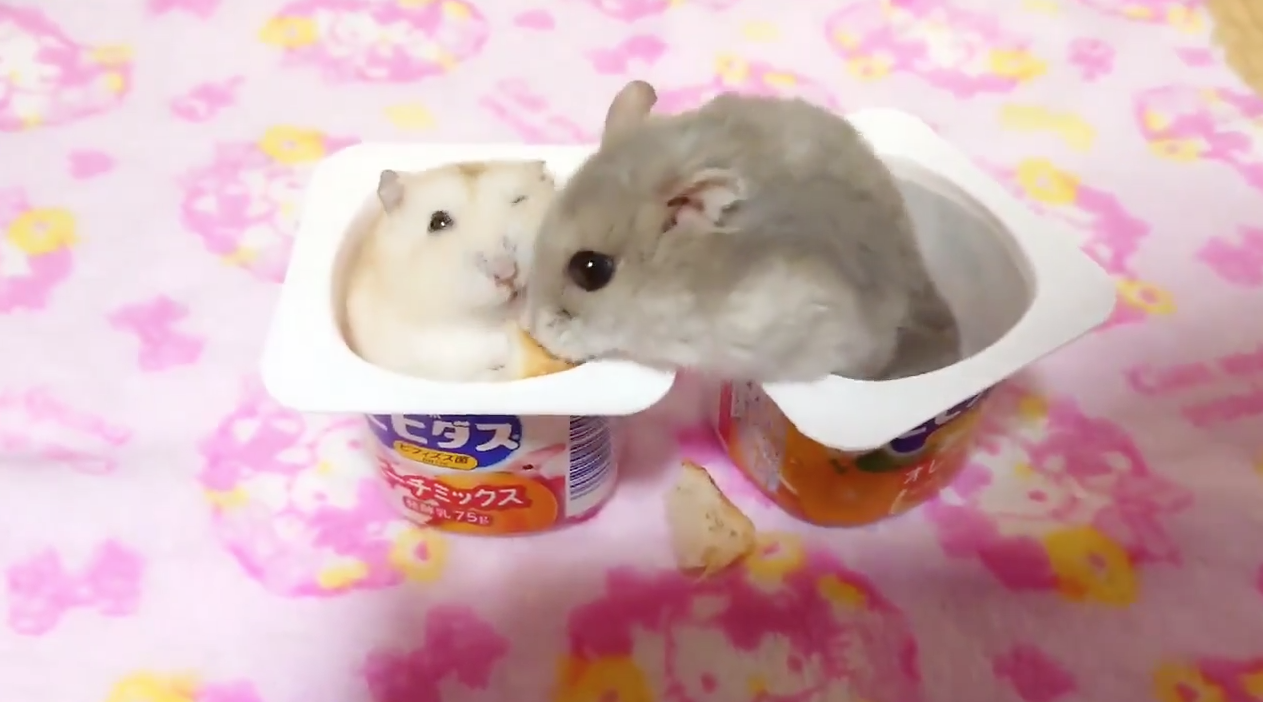 ▼但是隔壁那隻卻一直想要吃白倉鼠的麵包。
