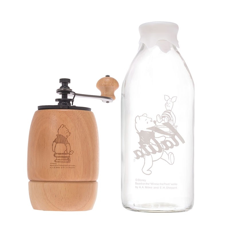 ▼4.小熊維尼咖啡磨豆機&瓶套組:這款磨豆機採用木質材料,圓滾滾的造型很可愛,每一個細節都非常精緻,哪怕不喝咖啡的人也可以買來收藏,放在家中當裝飾用。