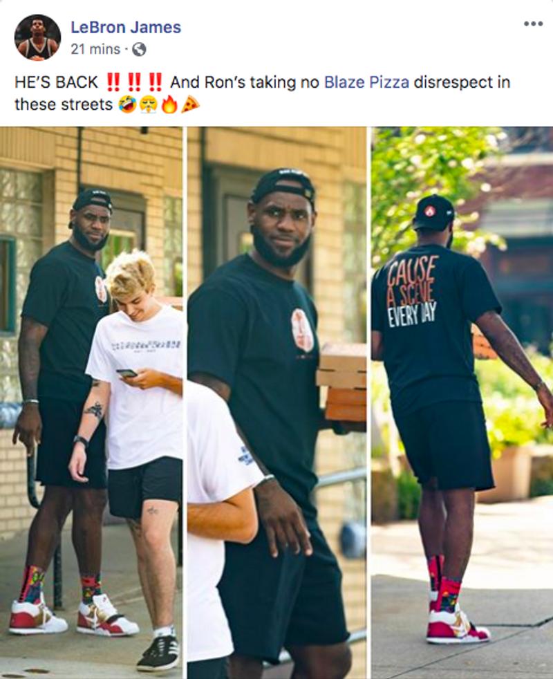 Ron is on a mission: to upgrade the way you pizza. So keep your eyes peeled. You might even get a whole Blaze pie for yourself, compliments of Ron. 🍕🔥 @KingJames @BlazePizza #BlazeBigger #UpgradeTheWayYouPizza pic.twitter.com/E3Bcws3Sfz