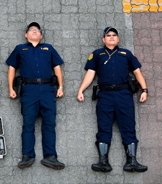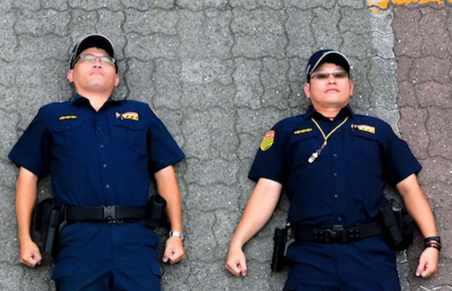 有網友還笑說,「他們是不是玩什麼遊戲輸了?」、「兩位阿Sir這樣躺住不動,我都忍不住笑了出來。」、「可以出一組公仔來賣」。認真的網友則發現台灣給警察的安全裝備似乎不太足夠,跟國外比起來簡直就是「簡配」,感嘆台灣的警察真的辛苦了。