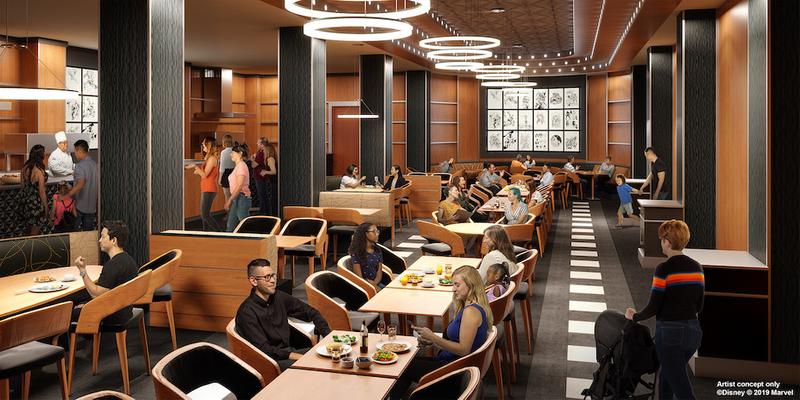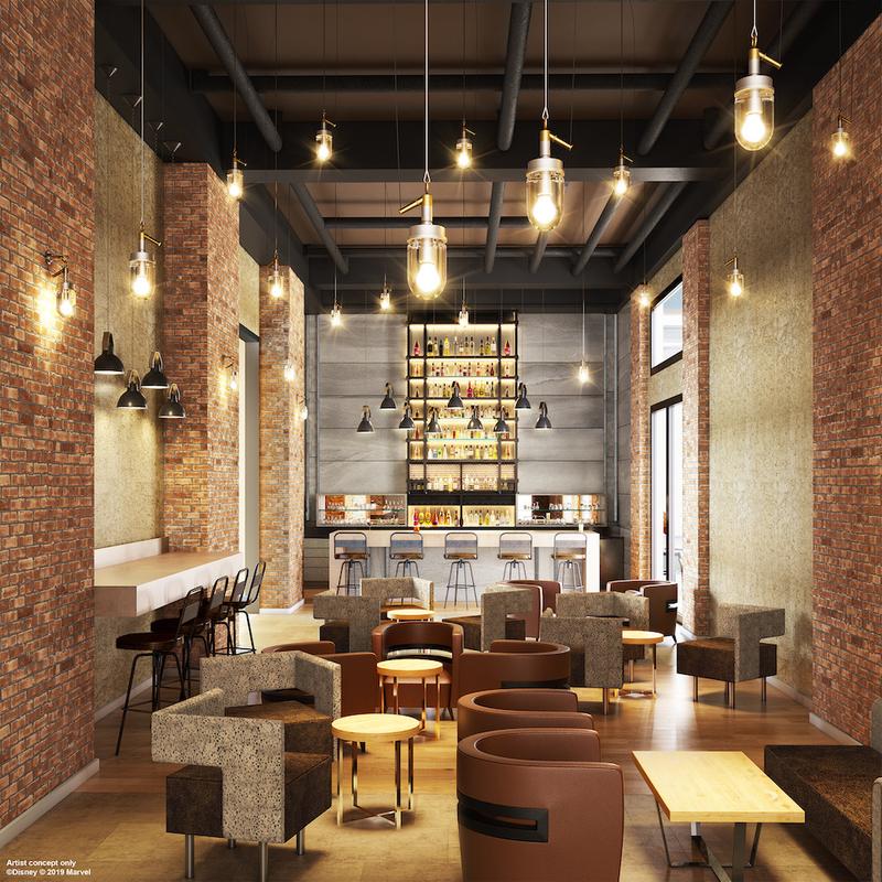 ▼飯店裡的義大利餐廳更是以雷神索爾中的阿斯嘉宮殿為靈感設計的,美式餐廳特色十足,只看設計圖,就能想像到復仇者聯盟的各位坐在這裡吃飯的樣子。