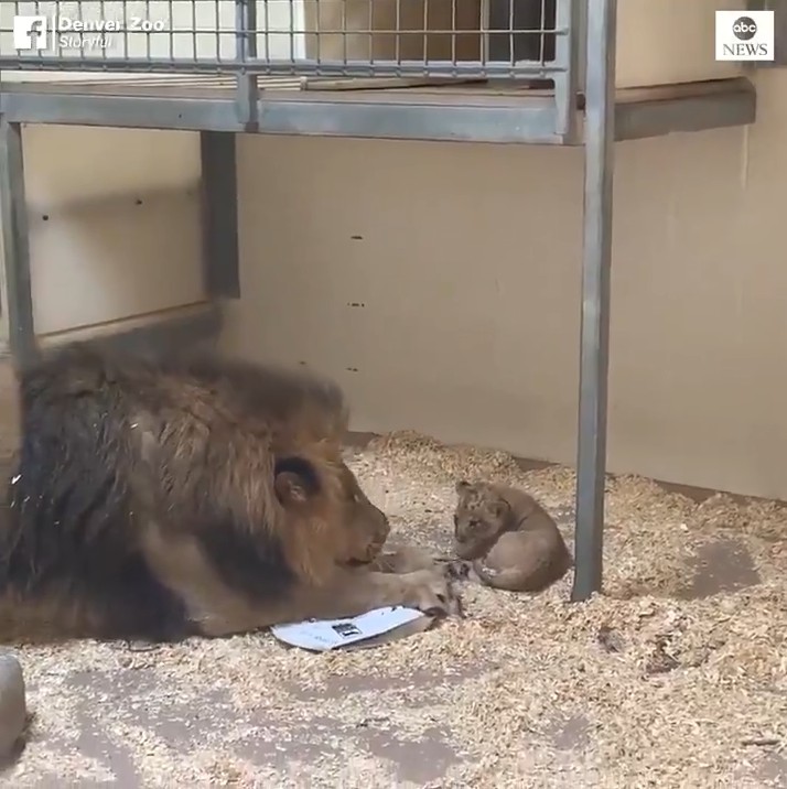 MEET THE FAMILY: Adorable lion cub meets his father and big sister for the first time at Denver Zoo, Colorado. https://t.co/thCxHhE8CC pic.twitter.com/NlMGwUza6n