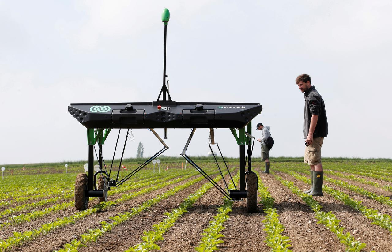 ▼ecoRobotix 的機器人搭載了 GPS、感測器等裝置,能夠在農田中自由穿梭而不會壓到農作物,也能夠精準的辨識出雜草和農作物。機器人無需人為操作,擁有自主運作的功能,也能透過太陽能面板解決充電問題,不僅可以連續工作12小時不休息,也可以透過手機 APP 為機器人進行調整。