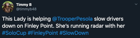 ▼Patti 的兒子Tim將媽媽用吹風機當「測速器」的照片po到社群網站上,這引起了公路巡邏隊的注意。
