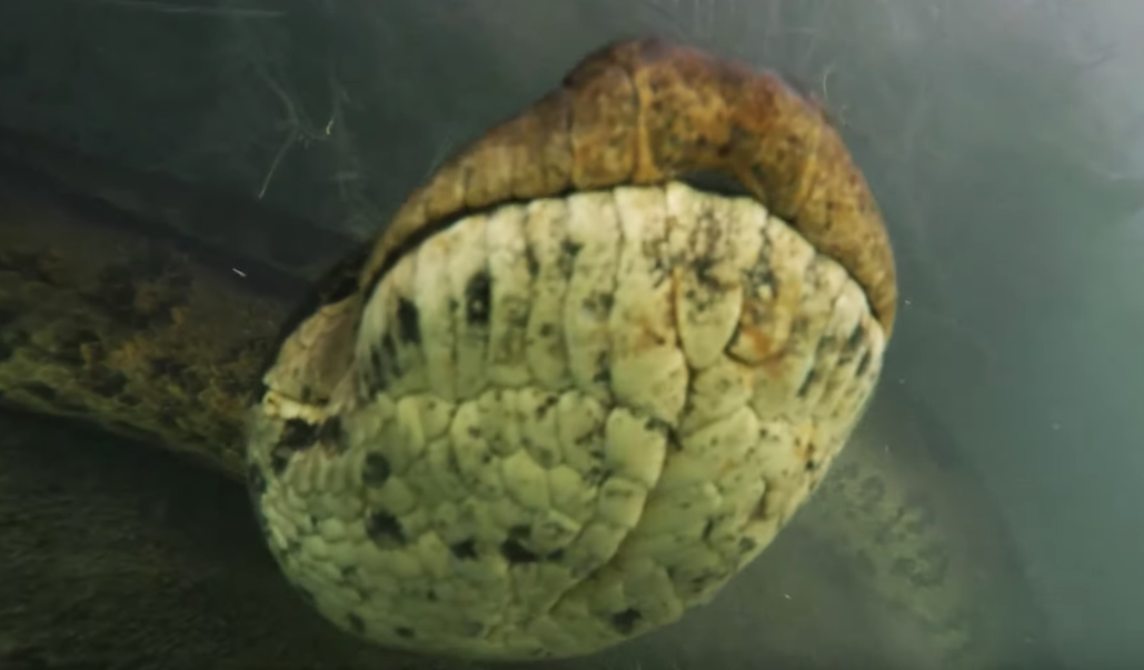 ▼仔細一看⋯那竟然是一條長7公尺、重達90公斤的綠水蟒(綠森蚺)!