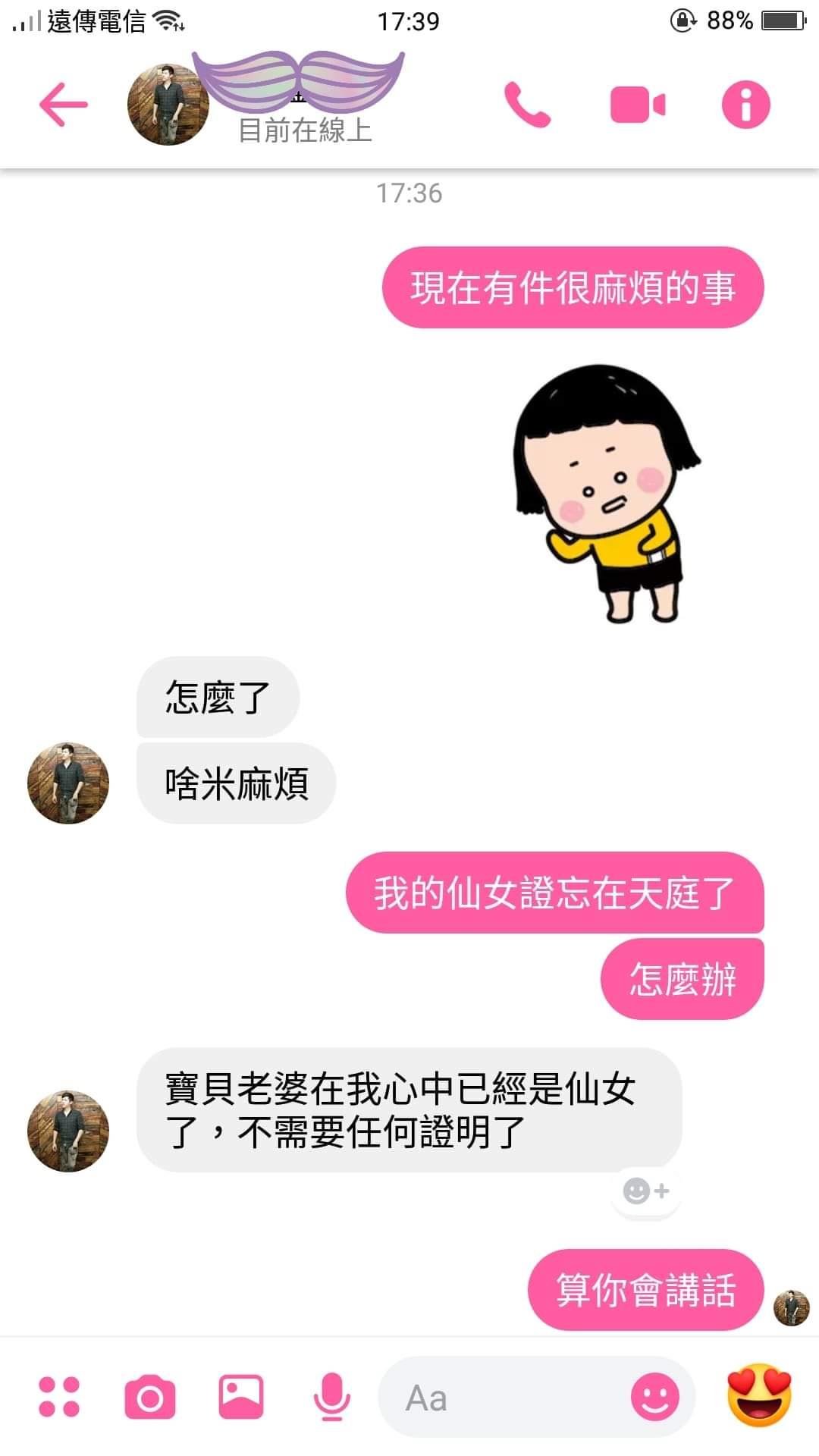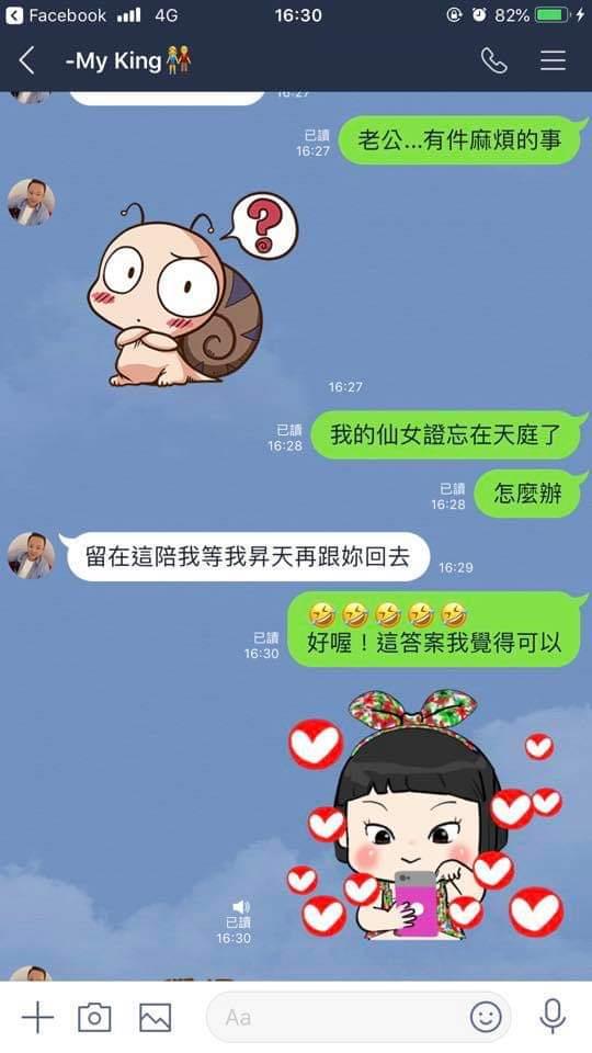 ▼「寶貝老婆在我心裡已經是仙女了,不需要任何證明。」