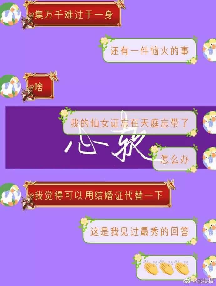 2019年09月19日最近網路上流傳一種測試另一半的新方法,女生問男友「我的仙女證忘在天庭了,怎麼辦」,看男友的回答就知道他是不是甜蜜用心啦。大家紛紛po出測試結果,這些五花八門的答案笑翻所有人。