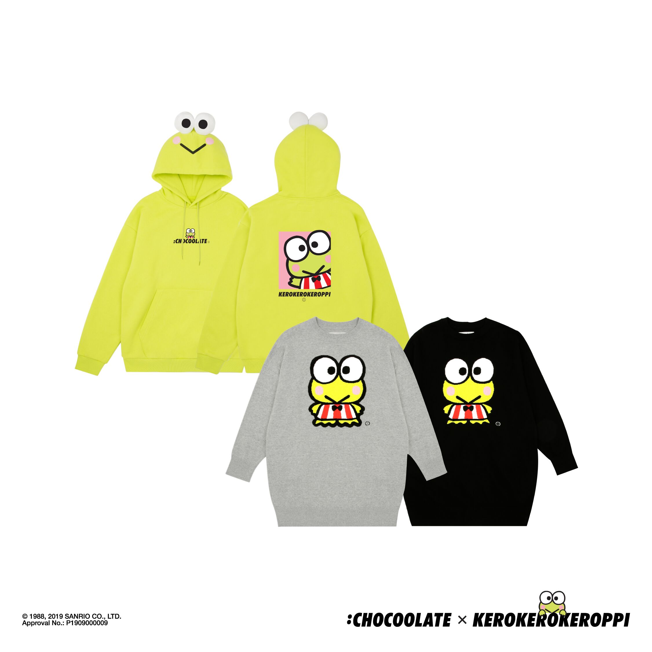 ▼:CHOCOOLATE與三麗鷗長期以來推出過許多聯名系列,這次在初秋首次安排讓大眼蛙當主角登場,把大眼蛙活潑可愛的元素,融入:CHOCOOLATE的衣服風格中。
