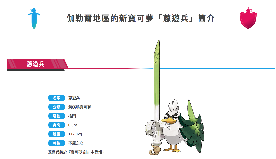 ▼根據官方網站的情報,伽勒爾地區的大蔥鴨經過許多決鬥後,最後才進化成為「蔥遊兵」。