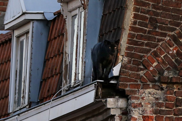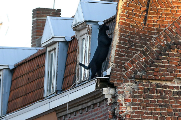 法國民眾呆滯了!屋頂上驚見「黑豹逛大街」 被抓後秒變乖巧黑喵