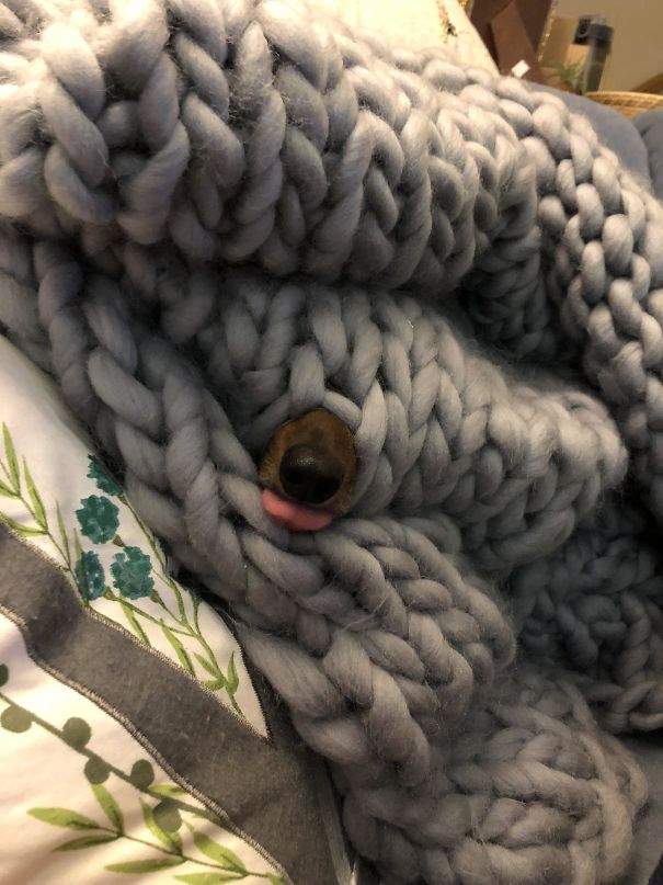 ▼「我的狗消失在毛毯裡了!等一下…我好像找到牠了。」