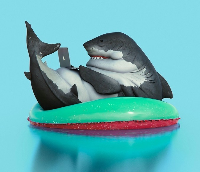 ▼為了使用3C產品,鯊魚進化出了新的本領,在水面上也能呼吸。