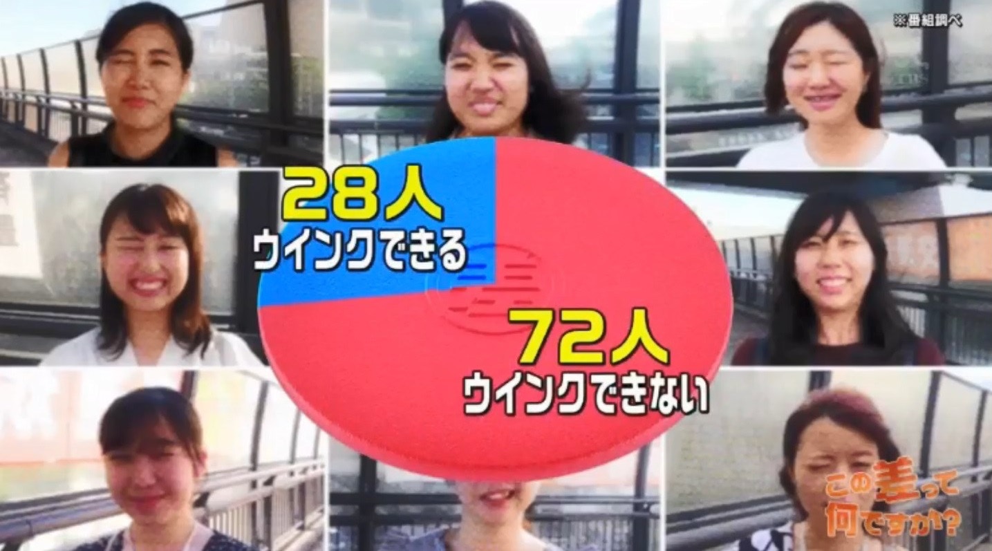 ▼最後發現100位女生當中,竟然有高達72位女生無法順利完成「眨單眼」這個動作!