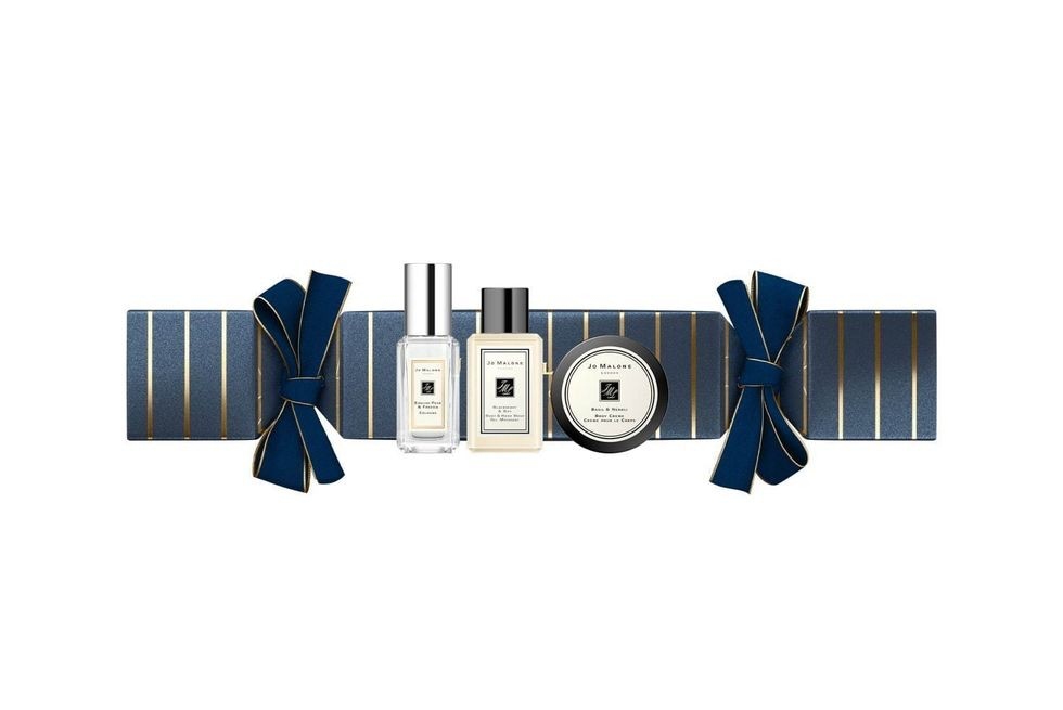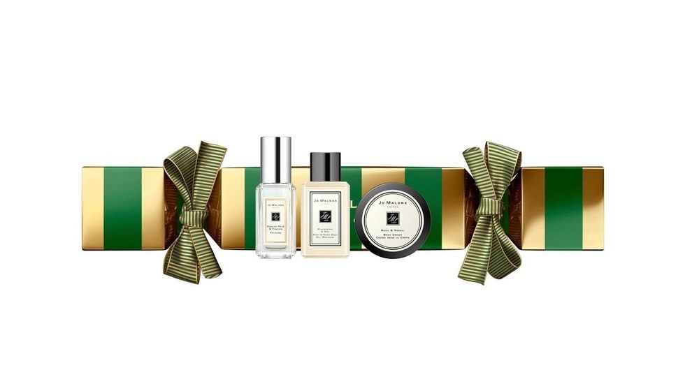 ▼同樣是每年都會推出的聖誕節限定拉炮包裝禮盒,包裝上深藍色、墨綠色和金色條紋相互交錯,還綁上了同色系的蝴蝶結緞帶,非常精緻。內容物也不含糊,是英國梨與小蒼蘭9ml古龍水、黑莓沐浴膠和羅勒與橙花乳霜。