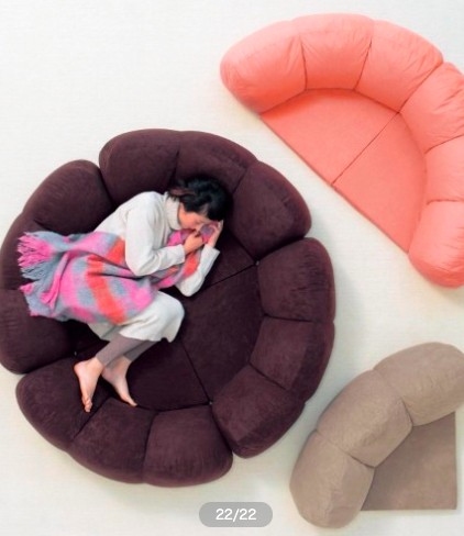 ▼最讓人驚喜的是,這款巨型睡窩可以自由拆解。它是由4個小沙發組成的,拆開後可以變成沙髮型坐墊,在前面擺個茶几,就能舒舒服服吃零食追劇了。
