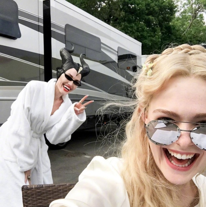 ▼《黑魔女2》的幕後同樣精彩。飾演奧蘿拉公主的艾兒芬妮(Elle Fanning)分享了她與安潔莉納裘莉在片場的有愛互動。她們竟然穿著戲服玩兵乓球,高貴冷艷的黑魔女太接地氣了吧。