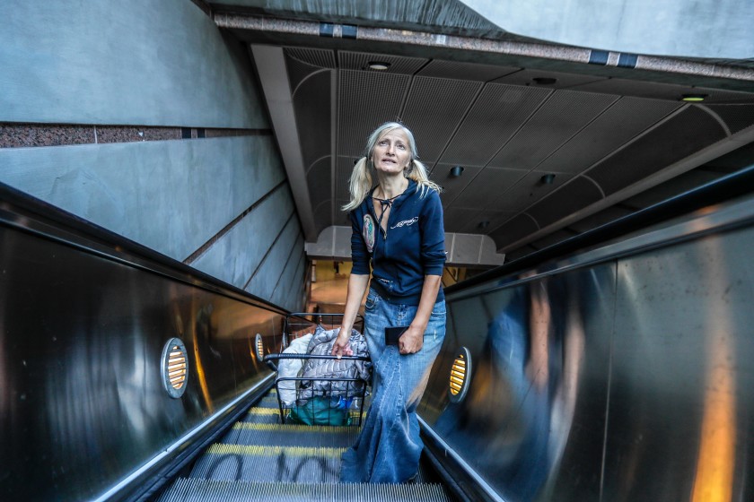 ▼Emily總是在固定的時間到地鐵站休息、盥洗。她沒有做什麼脫序的行為,也沒有把環境弄得髒亂,所以地鐵站的工作人員沒有趕她走,偶爾還會跟她聊天。