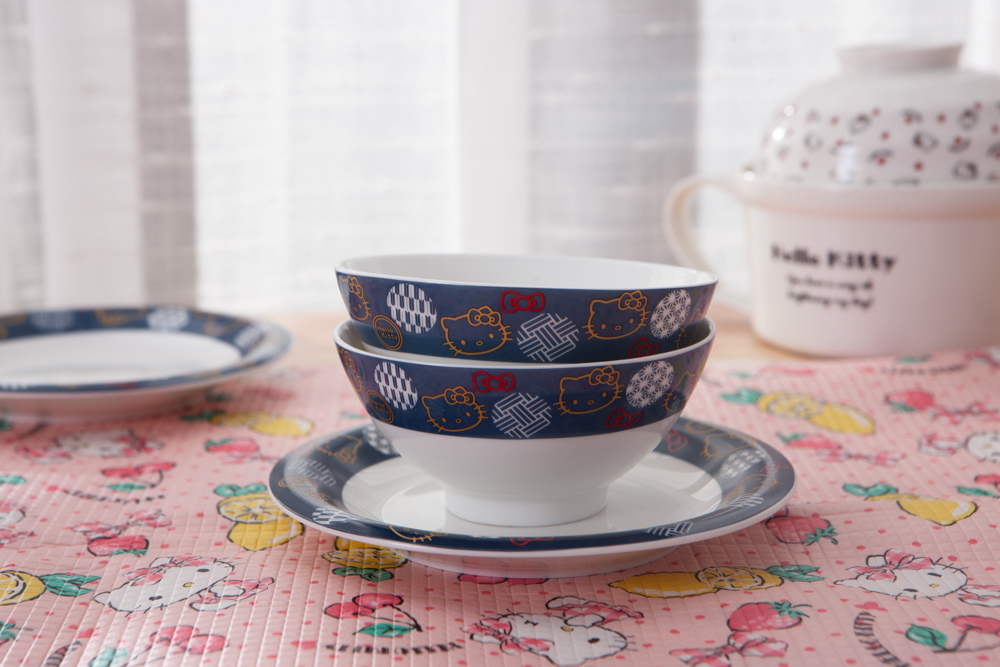 ▼深藍色的碗盤,在充滿粉色的餐桌上,更顯得獨特且沈穩,在簡約的設計上,印上低調的Kitty圖樣,怎麼擺盤都很可以!