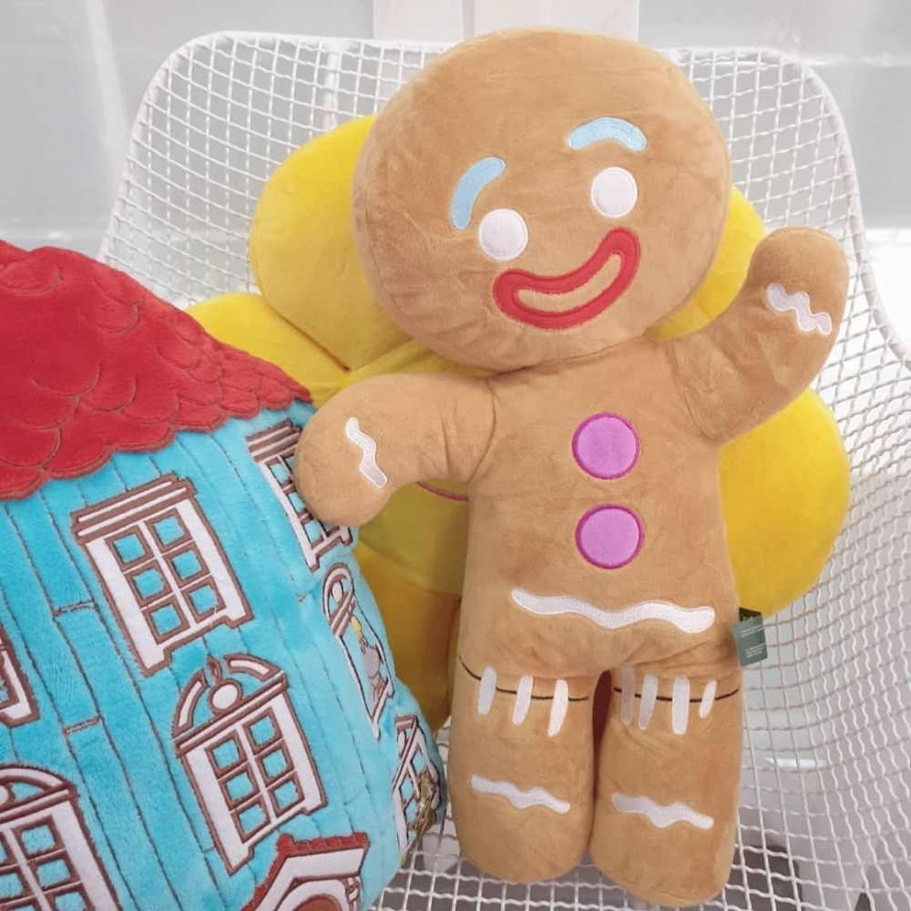 ▼薑餅人娃娃大約有50、60公分高,雖然沒有COSTCO超夯的巨型熊和巨型兔兔來得大,但拿來當抱枕或靠墊足夠啦。