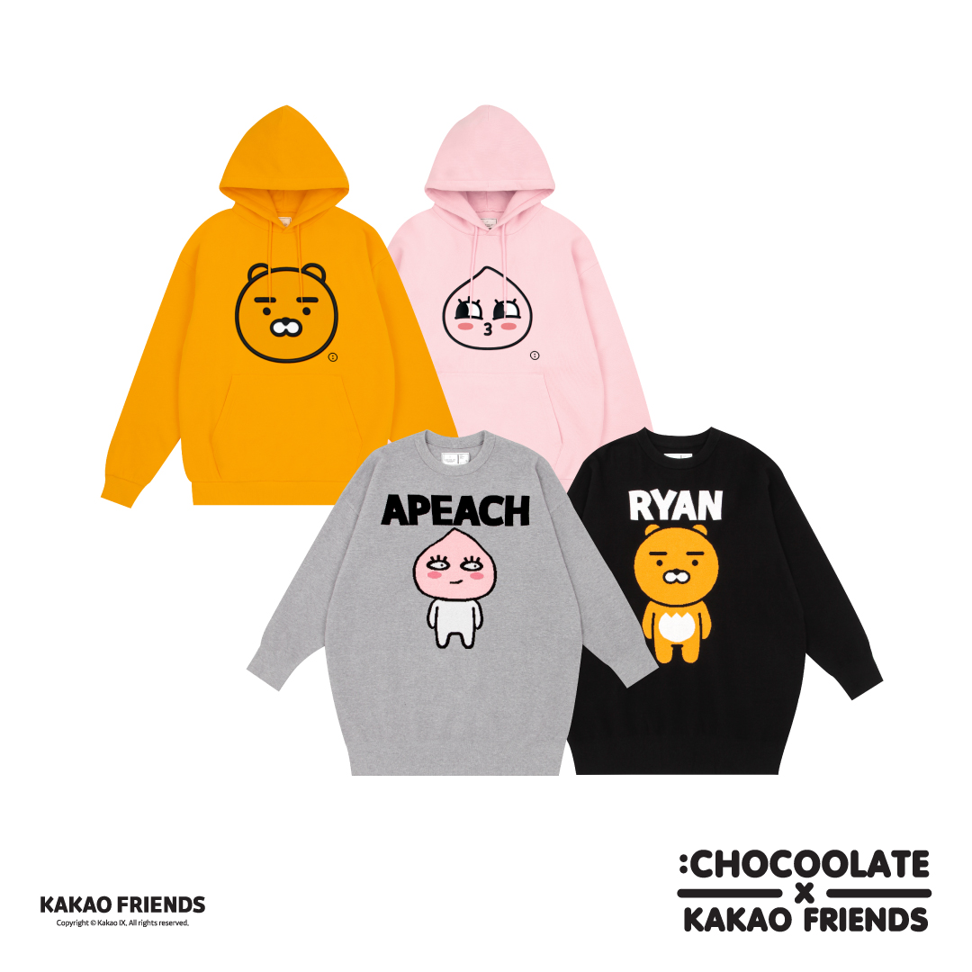 2019年10月05日:CHOCOOLATE再度與Kakao Friends合作,聯手推出全新的秋冬聯名系列啦,Ryan 及 Apeach 的粉絲千萬不能錯過,快點一起來看看吧!