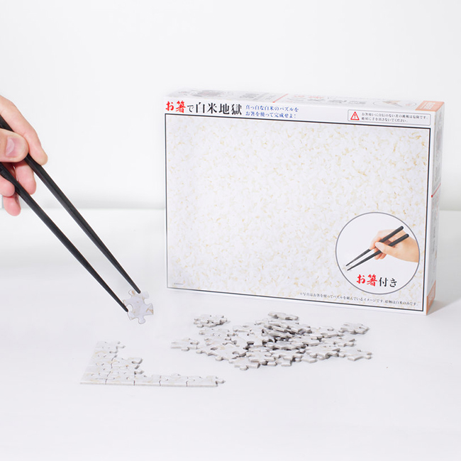 ▼最可怕的是,盒子上還呼籲想要完成拼圖的人如果還想要增加強度,可以試著用筷子來完成拼圖!