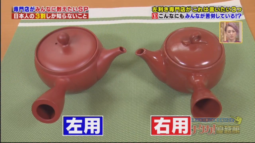▼如果左撇子用一般的款式,就要整個以很彆扭的pose把茶往外倒,操作一整個超艱困;而且因為這種倒茶的方式在日本是為佛壇添茶的,也有人認為這樣很不禮貌。