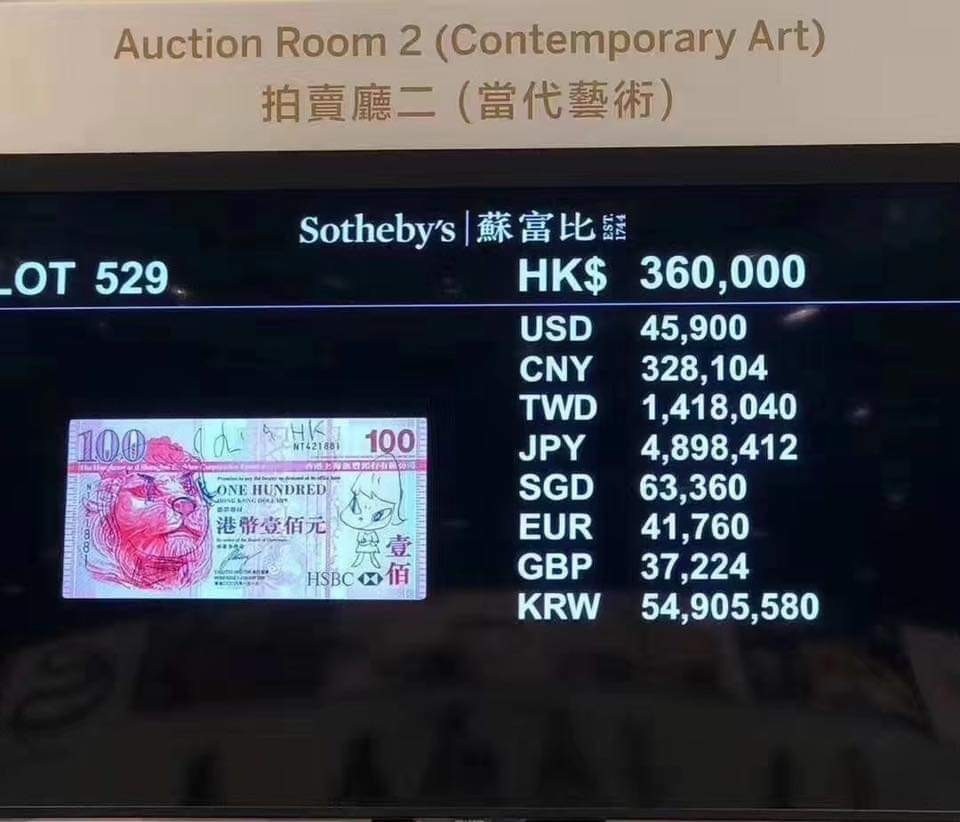 100元紙鈔上隨手一畫! 知名藝術家點石成金「拍賣價翻4500倍」