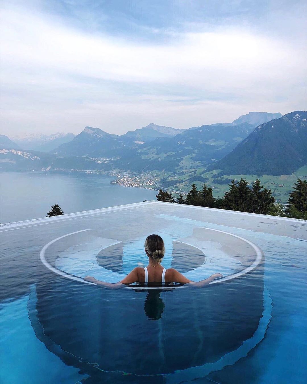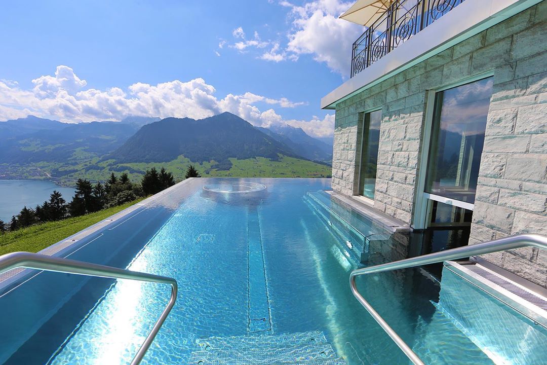 這家飯店建立於1905年,座落於琉森湖畔914m的高山上,擁有絕佳的琉森湖視野,是瑞士其中一家最有名的五星級別墅精品飯店!而這裡最有名的,就是可以將山谷、山脈和琉森湖美景盡收眼底的戶外溫水游泳池,在這裡無論是欣賞日出日落,或者單純坐著發呆,所見的美景都能夠讓人為之震撼!
