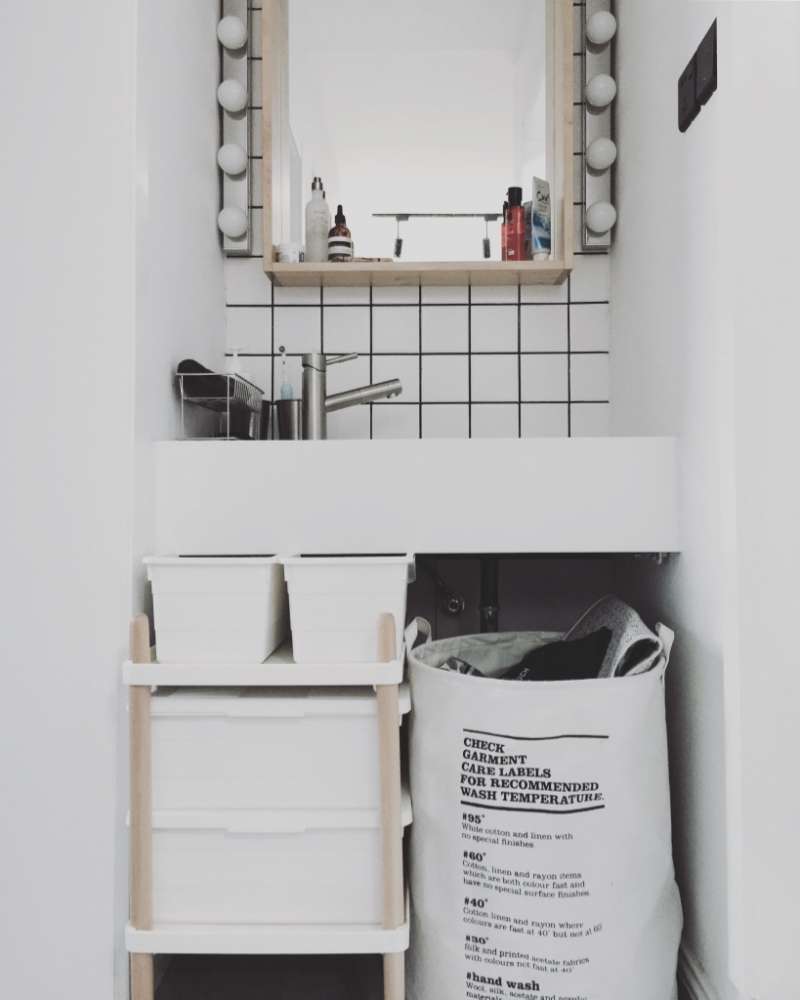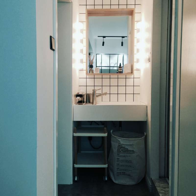 ▼原本放冰箱的陰暗角落,被改造成了洗手台,開燈時簡直不能更美了。