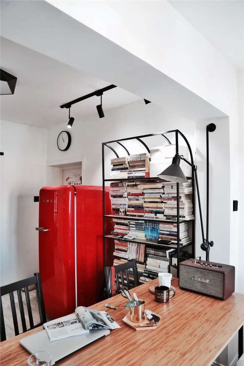 ▼一旁的書架放了兩人買來看完的書,大木桌則讓夫妻可以一起在這裡看書、工作,營造出真正的家庭感。