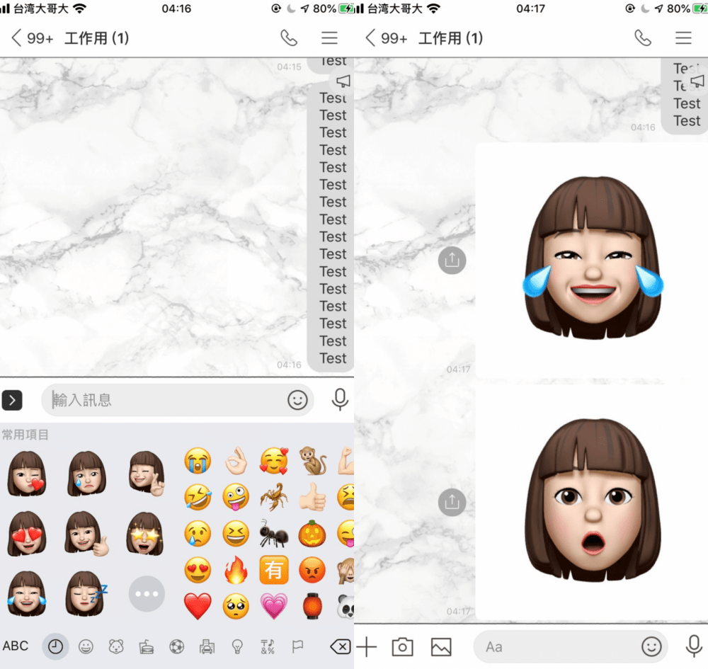 ▼可以將Memoji用在其他通訊app上,就內建在鍵盤裡,不過只能以圖片的方式傳送。但用在IG Story和What’s App上的話,就是真正的Memoji喔。