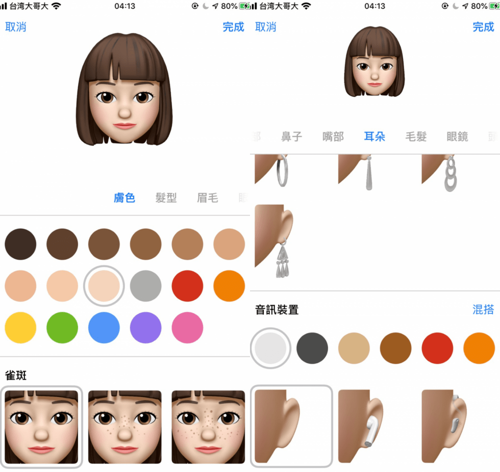 ▼9. Memoji更豐富:Memoji推出了更多捏臉功能,比如豐富的髮型、妝容、飾品超等等,還支援到其他app中使用。