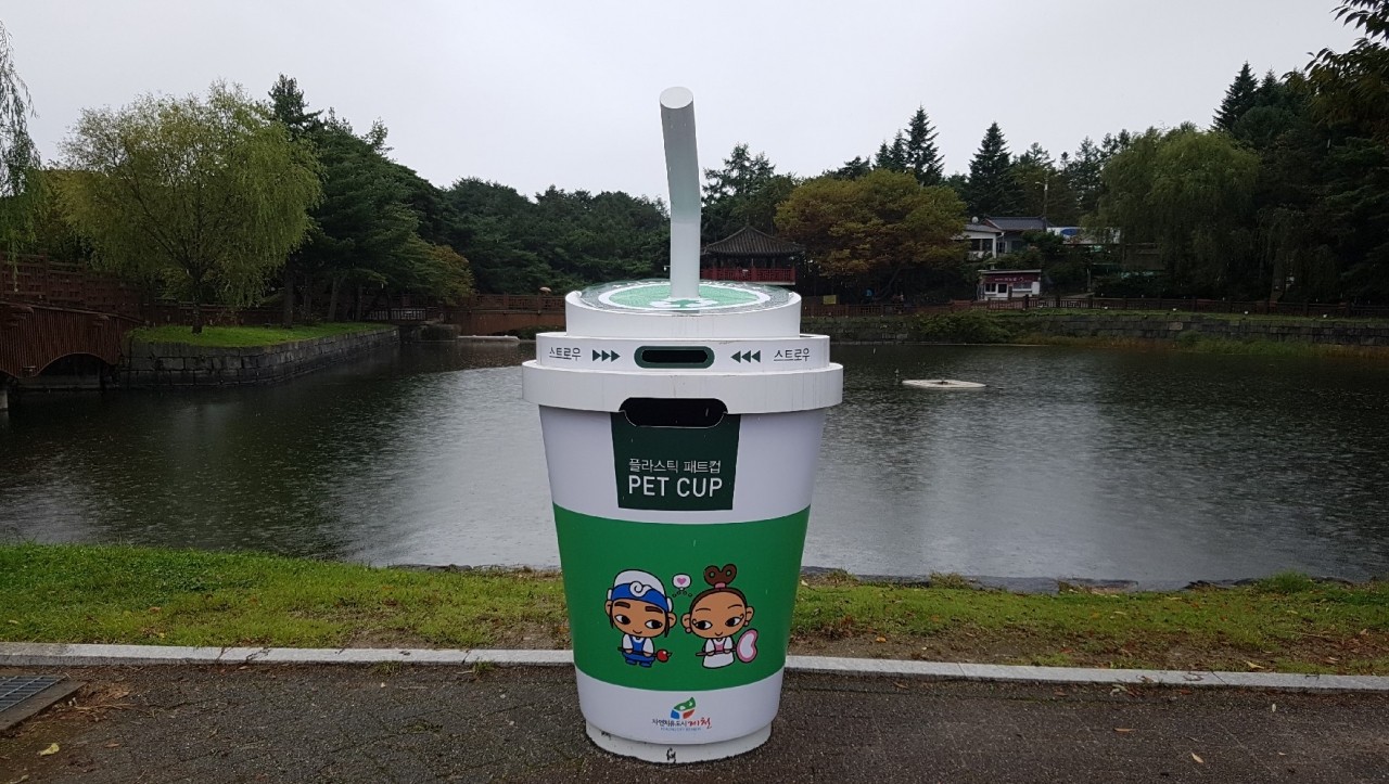 ▼這款看起來就像是一個大型咖啡紙杯的造型垃圾桶目前總共有兩個,高約1.5公尺、寬約1.1公尺,放置在南韓忠清北道堤川市車站和義林池邊公園。不過網友感興趣的並不是其可愛的造型,而是這兩個垃圾桶竟然要價780萬韓元(約新台幣20萬元),讓許多網友紛紛留言表示:「真的有必要嗎?」