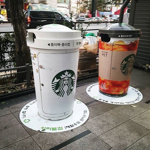 ▼這類垃圾桶其實有著特別的含義,原來韓國當地人都很愛喝咖啡,每天都會製造出大量咖啡紙杯垃圾,這類標示了「Pet Cup」字樣的垃圾桶,其實是專門回收咖啡紙杯的。