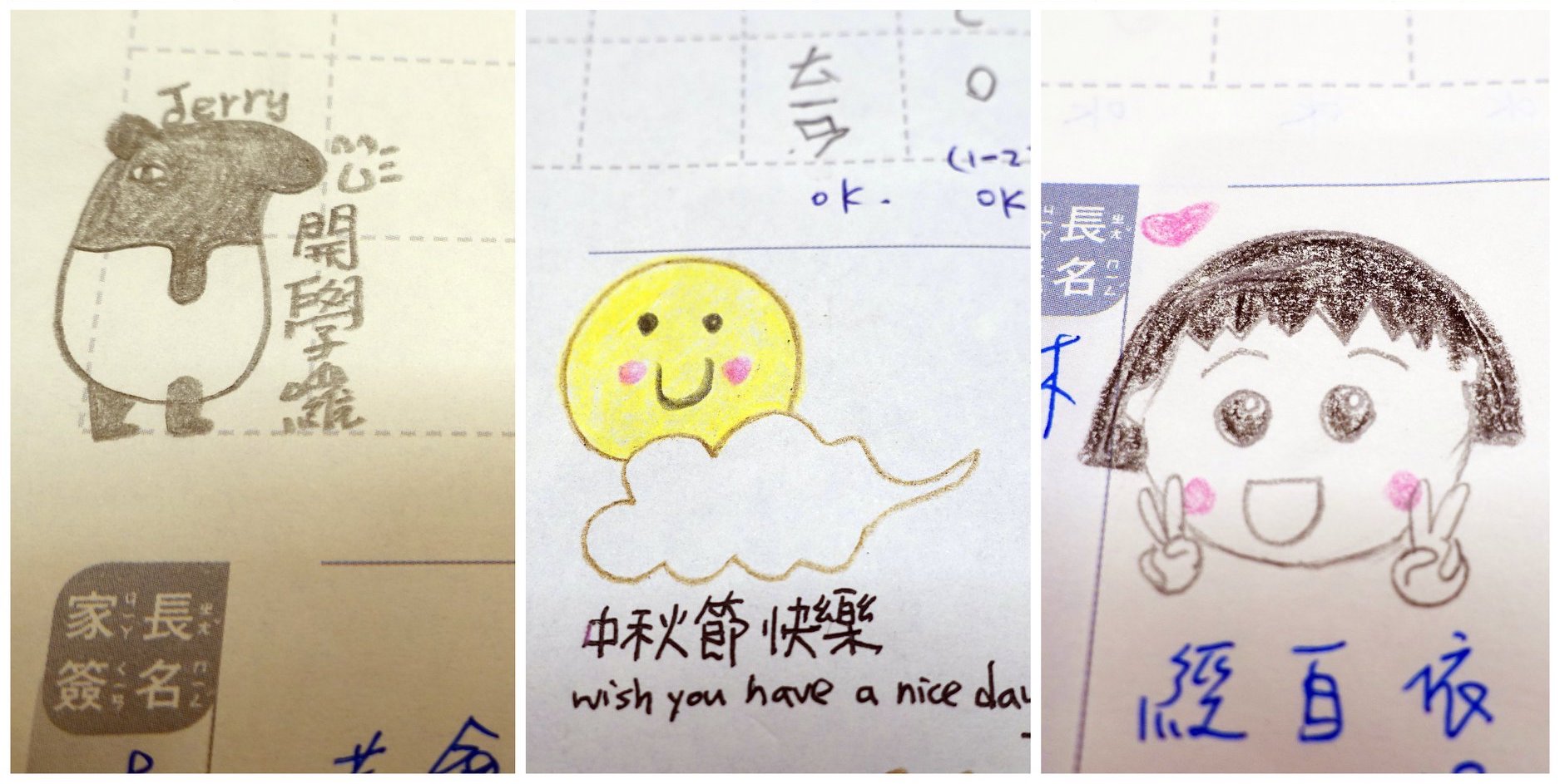 ▼網友CHIEN-YU LIN在聯絡簿上用塗鴉來跟老師交流,富有童心的插畫真的金勾錐。