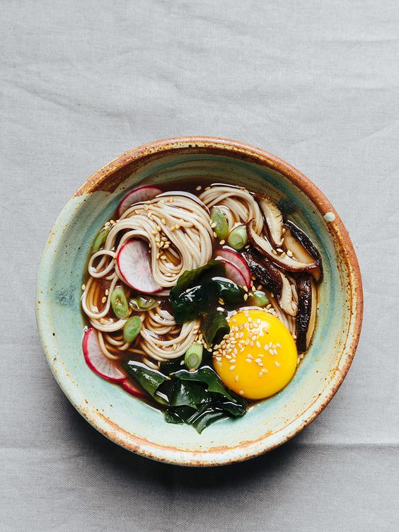 因為人體在夜間的新陳代謝率會降低,因此晚餐最好吃得比較清淡一些,否則很容易增加腸胃的負擔!選擇蕎麥麵搭配蔬菜和雞蛋,不僅卡路里非常低,也可以補充蛋白質和纖維,容易讓人有飽足感。