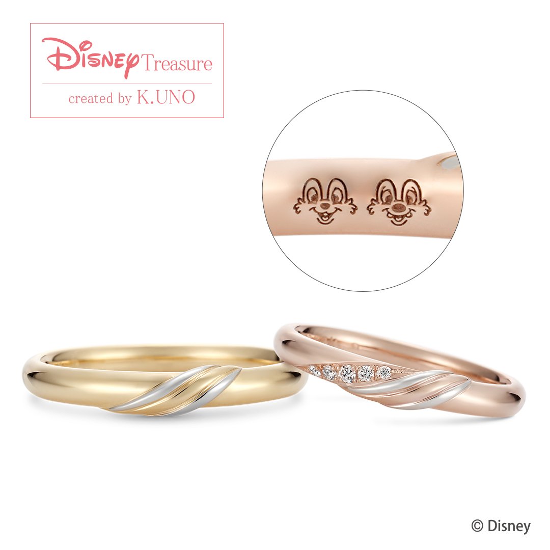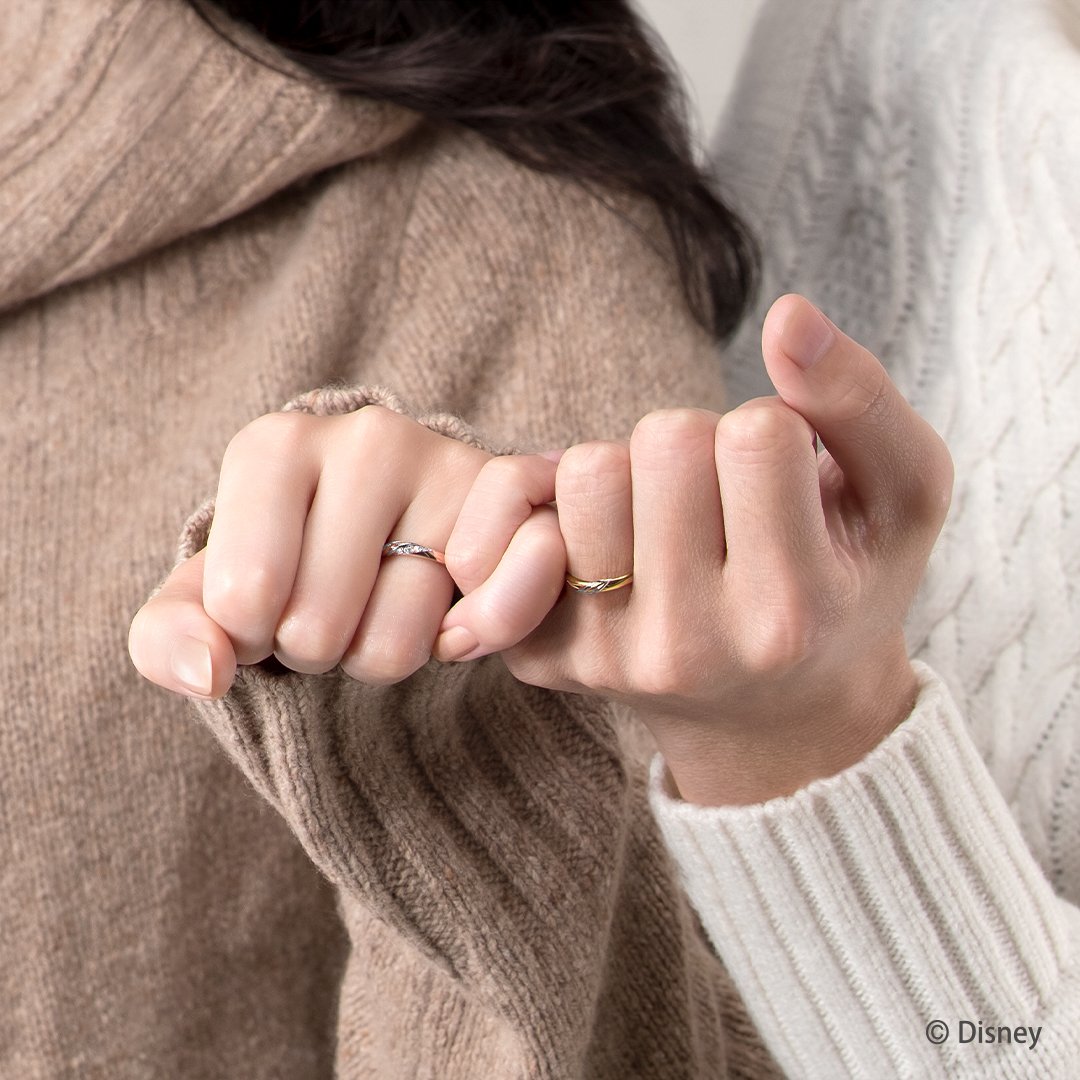 ▼女生款戒指為玫瑰金+白金,男生款則是黃金+白金色,上方還鑲上了鑽石,看起來十分精緻!重點是戒指的下方還刻有「奇奇蒂蒂」的圖案喔,似乎象徵著奇奇蒂蒂將會陪伴我們度過人生的每個重要時刻,實在太浪漫啦~