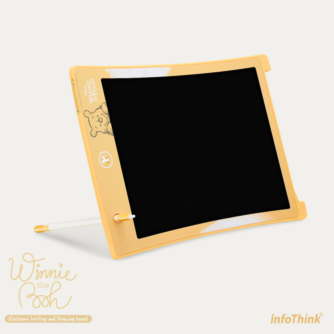 ▼小熊維尼電繪版:做設計的人應該超感動,因為電繪版基本上很少出這種造型周邊啊!維尼就趴在電繪板上看著你,熬夜肝圖的時看到超卡哇伊的維尼,瞬間身心靈都被療癒惹~此外,電繪筆也很有巧思的用白、黃兩色,做出蜂蜜流淌的感覺,就好像拿著甜點在做畫一樣~